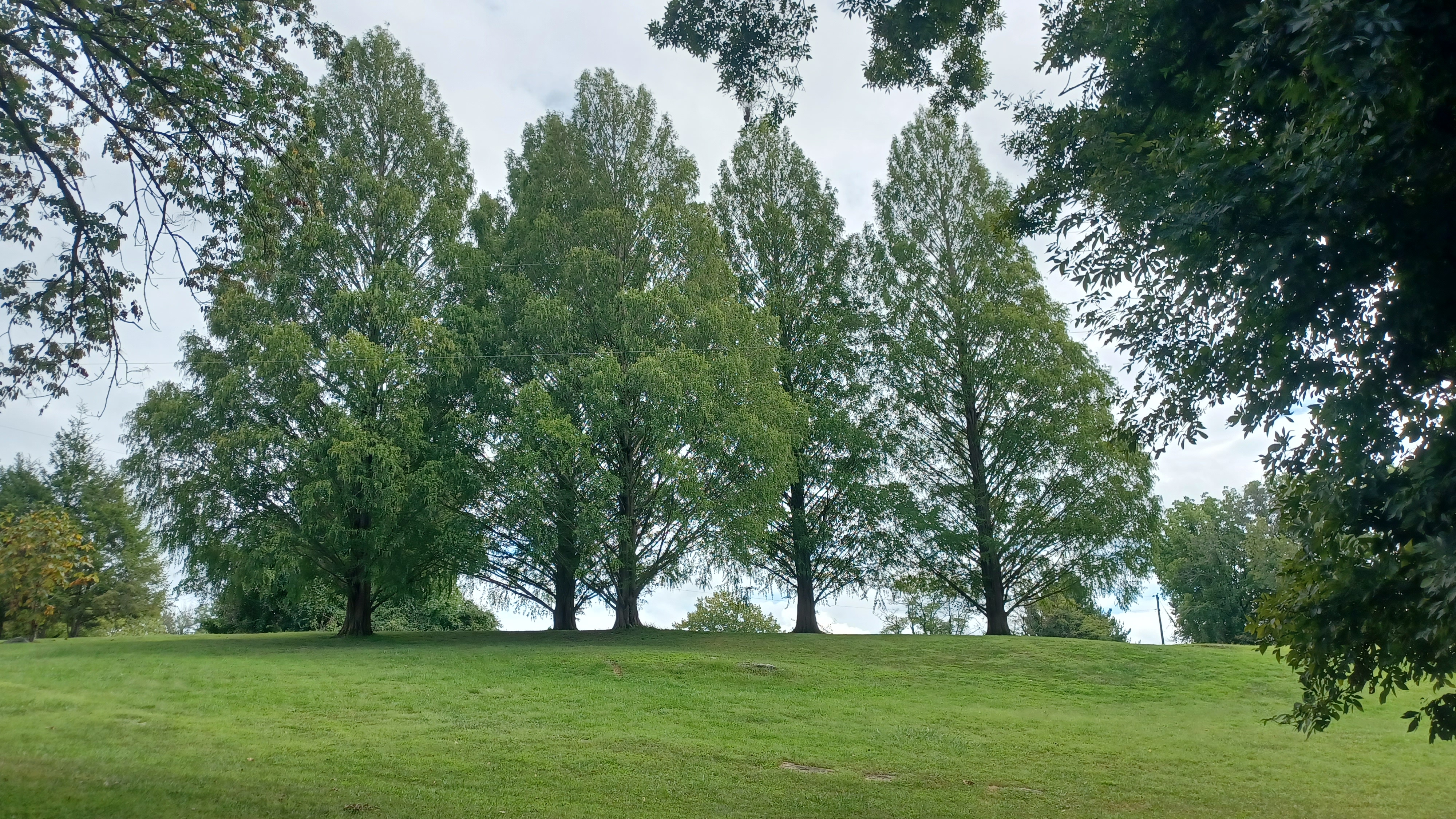This was a pleasant walk, with a view to the west where there was an odd looking water tower. We continued through the cemetery, and I chose a line to walk that was about a block's distance from the people who were there mourning.