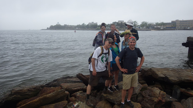 There was a little sea wall type of thing as we got closer to the developments, which gave us a view of the buildings at Kingsborough College out on Coney Island, and to the Sheepshead Bay. I figured this was a good spot for our group photo.