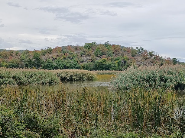 After just a little ways down the trail, there were good views opening up of the marsh land around Iona Island. There were then good views of the island, of the old buildings on it, and of Anthony’s Nose beyond.