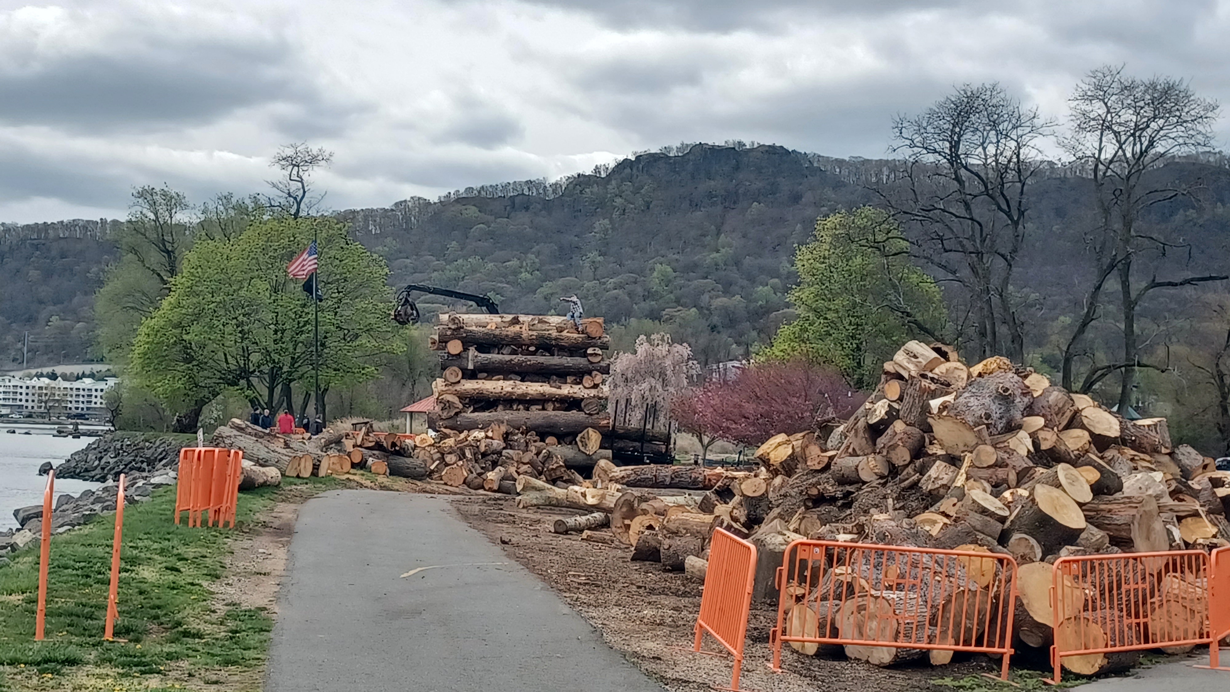 As we walked, there was a closure of some of the path, and then giant piles of wood all over the place.