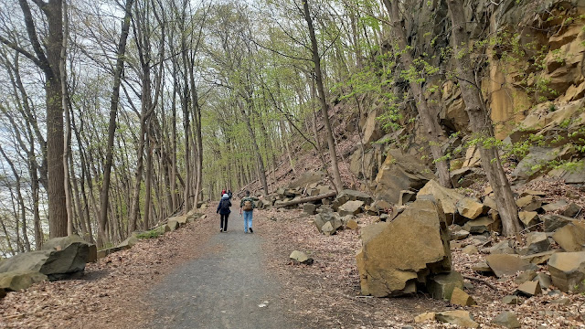 As we walked along the edge of the park, we had some good views straight ahead of High Tor, the local promontory on the Palisades formation. The formation is composed of igneous extrusive basalt that stretches from the south side of Bergen Hill at the Bayonne border in NJ, all the way to Mt Ivy NY.